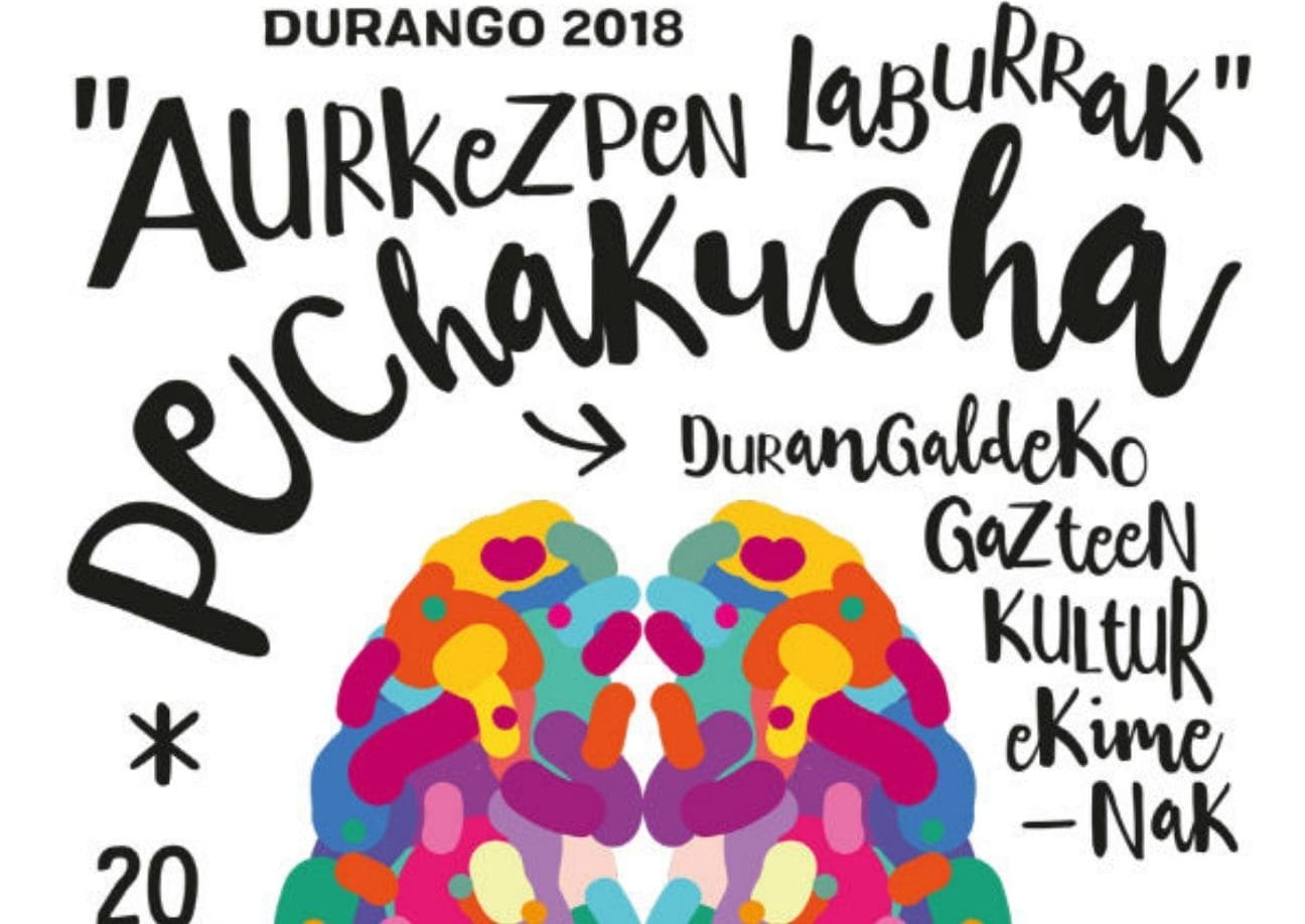 Pechakucha organiza Gerediaga Elkartea con la ayuda del Ayuntamiento de Durango. En esta ocasión, Garai Brewing Co. y Saltsan Katerin colaborarán en el lunch que habrá al finalizar.