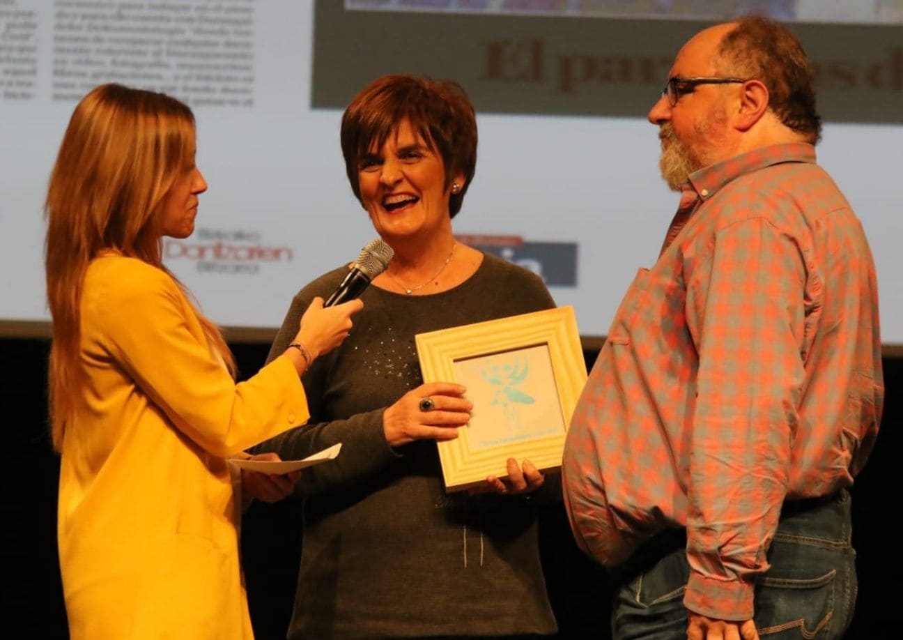 La ayuda ofrecida a los grupos de baile de la comarca y su labor en la organización de la Ezpatadantzari Eguna han sido motivos de agradecimiento. Junto a Gerediaga Elkartea también recibió un homenaje el txistulari Karmelo Barruetabeña. En nombre de Gerediaga Elkartea Nerea Mujika presidenta de la asociación y Jon Irazabal socio de Gerediaga fueron a recoger el premio.