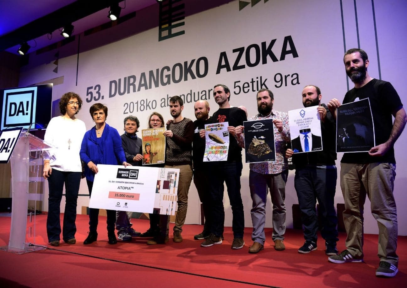 La beca de creatividad promovida por Gerediaga Elkartea en colaboración con el Ayuntamiento de Durango ha sido una de las novedades de la 53ª Durangoko Azoka. Los 15.000 euros de ayuda han recabado en el proyecto "ATOPIArpg" del colectivo "Etzi Portu Maritimoa"