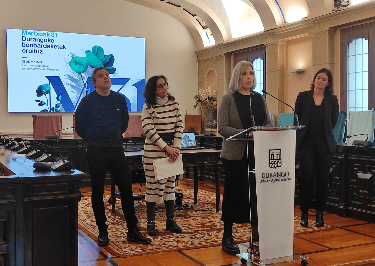 Hoy hemos presentado en el Ayuntamiento de Durango el programa para recordar los bombardeos del 31 de Marzo. Se trata de un programa realizado con las aportaciones de varias asociaciones coordinadas por el Ayuntamiento de Durango. Gerediaga Elkartea ha preparado, un año más, actividades basadas en la transmisión, la investigación y la memoria.