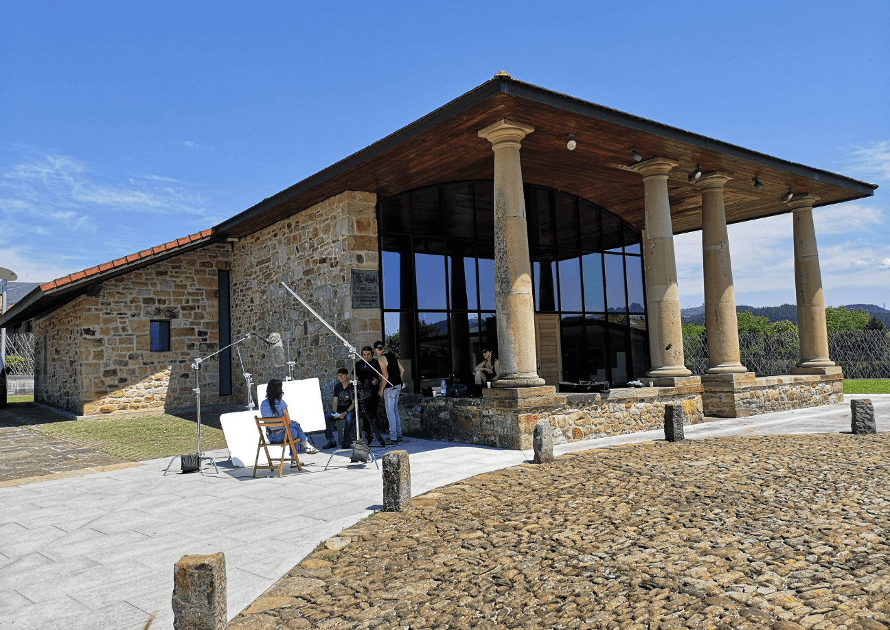 Argazkia: ikuskizunerako bideo laburren grabaketa momentu bat Gerediagako foru-zelaian. Bideografik ekoizpen etxea eta Edorta Barruetabeñak osotu dute taldea.