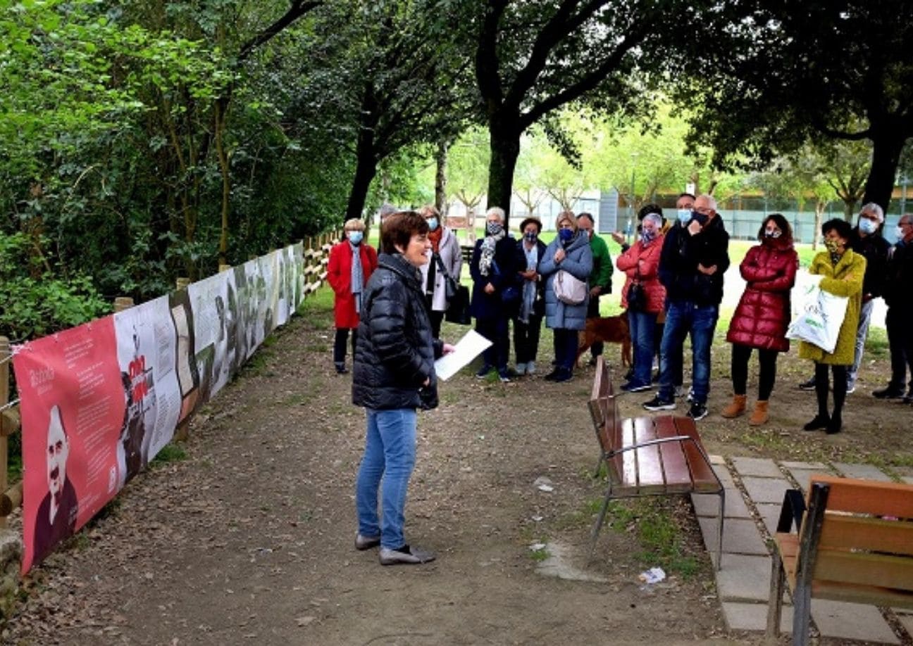 Arripausuetako presari buruz berak idatzitako erreportajearen erreplika jarri dute Landako bidegorrian. Astola aldizkarirako idatzitako bere azken ikerketa izan zen, iaz kaleratutakoa.