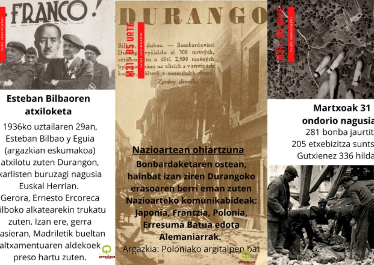 Martxoaren 1etik, Durangoko bonbardaketari buruzko jakingarriak argitaratzen gabiltza egunero